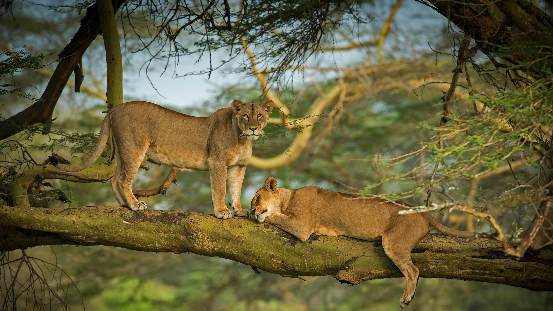 Female lions in the forest surrounding Lake Nakuru, 肯尼亚 (© Scott Davis/Tandem Stills + Motion)