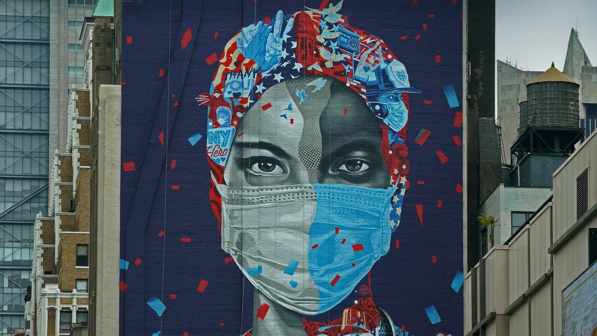 'Now & Forever,' a mural by Tristan Eaton honoring health care workers, May 11, 2020, in 纽约市 (© Timothy A. Clary/AFP via 盖蒂图片社)