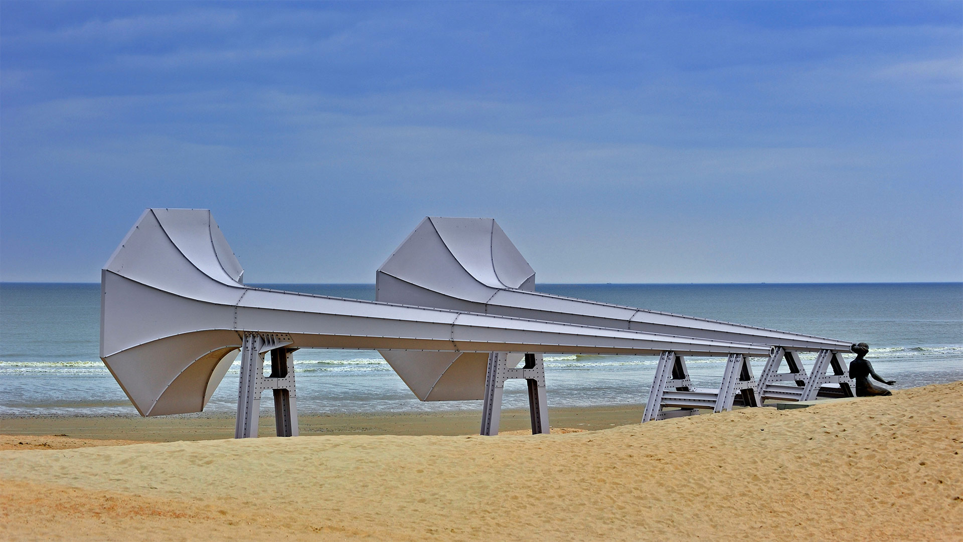 'I Can Hear It,' an installation by artist Ivars Drulle on the beach by the villages of Middelkerke and Westende, Belgium (© Arterra Picture Library/Alamy)