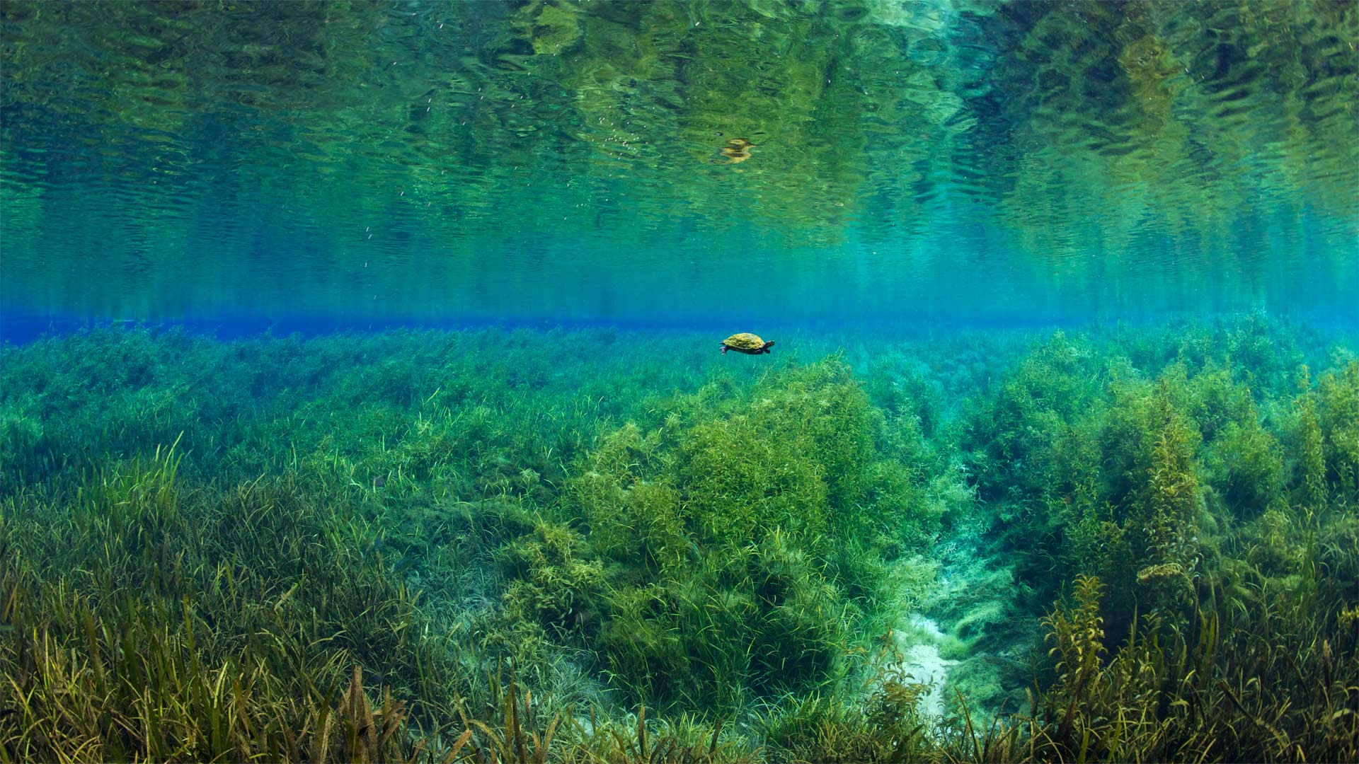 佛罗里达州 red-bellied turtle in Rainbow Springs, 彩虹泉州立公园, 佛罗里达州 (© Michel Roggo/Minden Pictures)