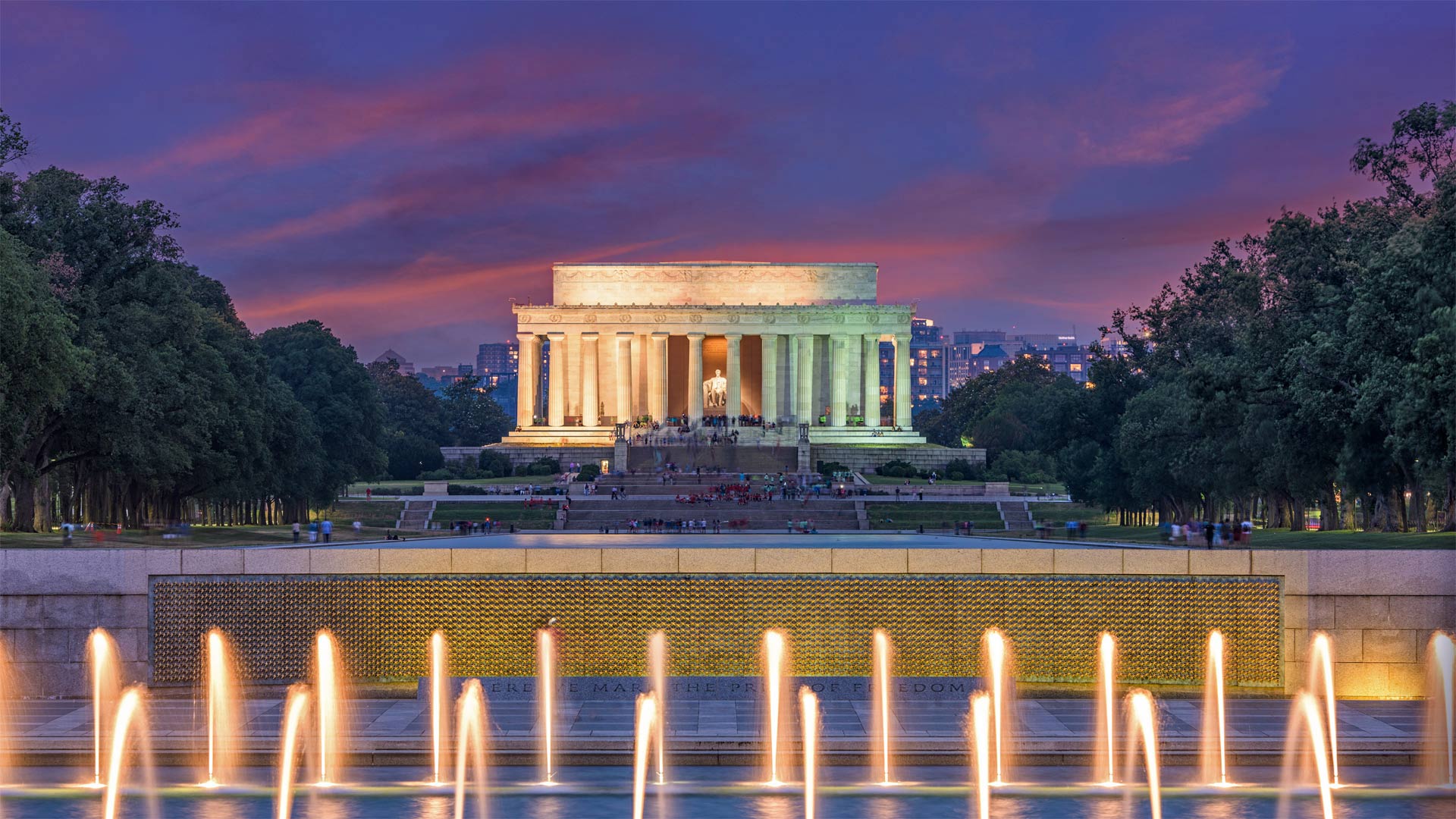 Rainbow Pool and the field of stars in the World War II Memorial with the Lincoln Memorial in the background